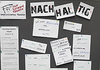 Grundsätzlich lässt sich improvisiertes Theater auf nahezu alle Themen anwenden. Aber natürlich haben auch wir unsere Schwerpunkte, nämlich u.a.: Nachhaltigkeit / Klimawandel / Demografischer Wandel / Industrie 4.0 / Digitalisierung / Führung, Mitarbeiterkommunikation und Teamwork in einer VUCA-Welt